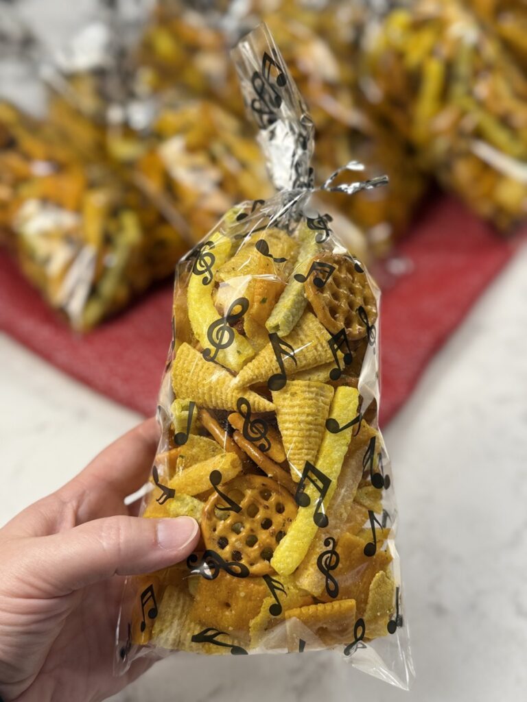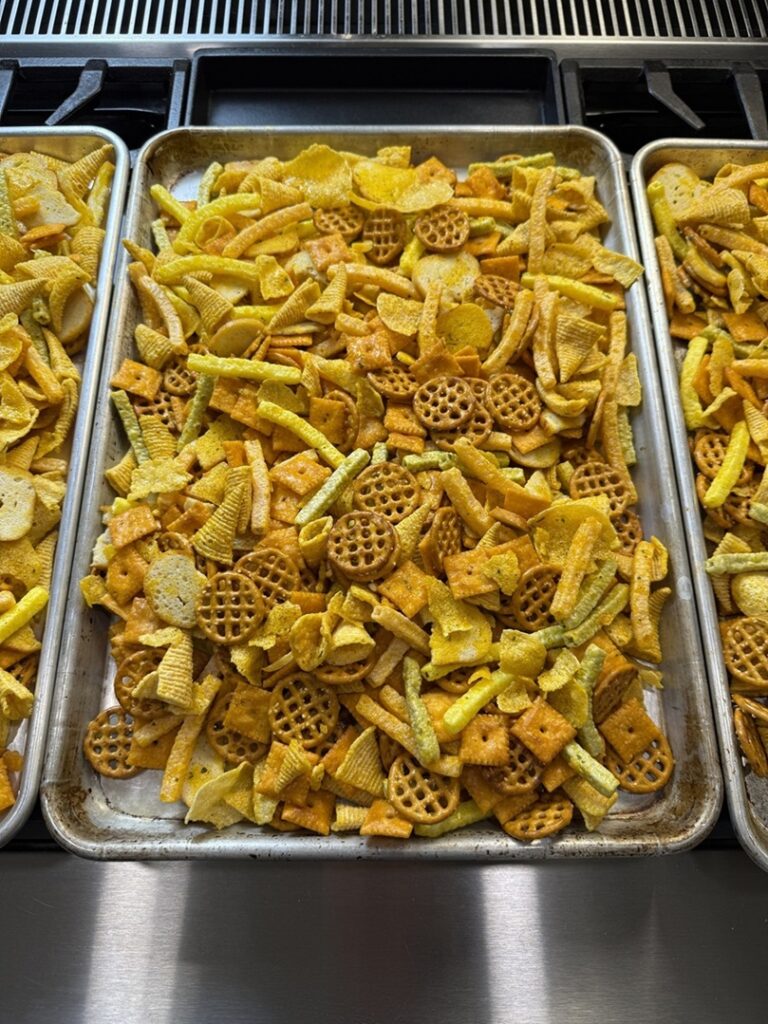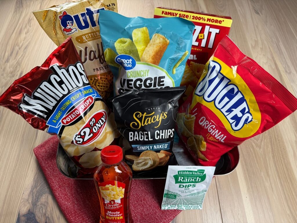 It also uses a few items you don’t always see in other snack mixes, like Munchos, Veggie Straws, Bugles, and plain bagel chips.