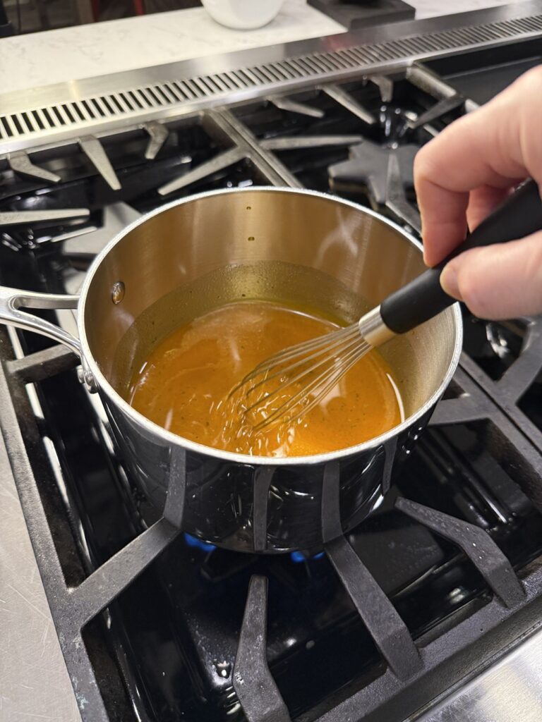 Gently warming the buttery topping mixture helps the ranch seasoning dissolve.