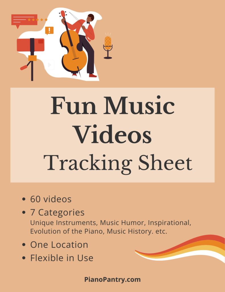 Teachers: If you would like to use this fun music video series during an off-bench music lab, assignment pages where students can track their watch history, check out this tracking sheet available in the Piano Pantry shop.