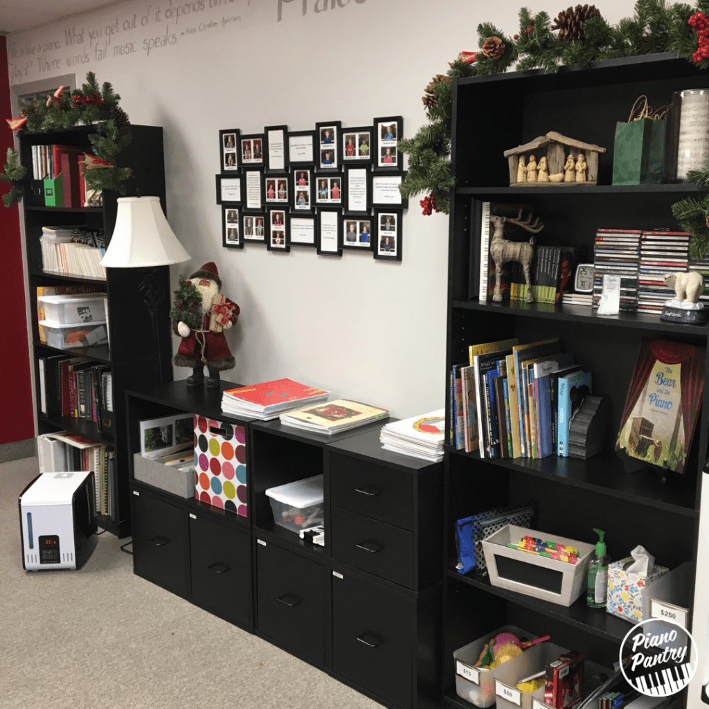This post has great timing! My birthday is Sunday and my daughter is now home after graduating from college last weekend. For my birthday, I asked her to help me organize my piano studio so I can access games and other helpful tools for lessons. Thanks for the tips! Your space looks great!